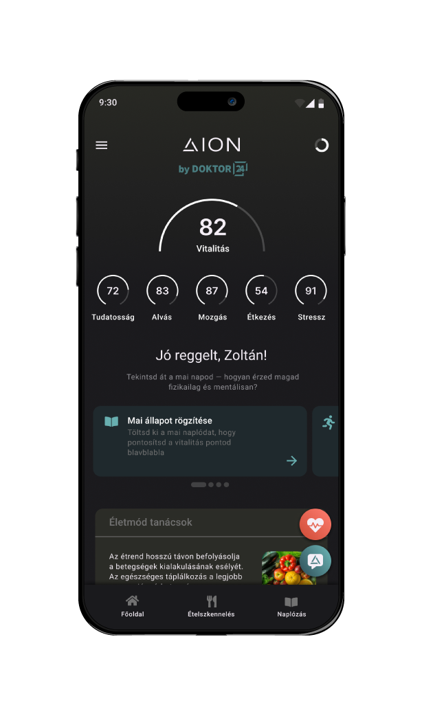 Az AION Sense egy átfogó digitális egészségplatform, amely különböző forrásokból — bioszenzorokból, vérvizsgálatokból, egyéb leletekből, valamint diétára és életmódra vonatkozó adatokból — gyűjti és elemzi az egészséget meghatározó kulcstényezőket, Doktor24 egészségügyi partnerünkkel együttműködésben.
